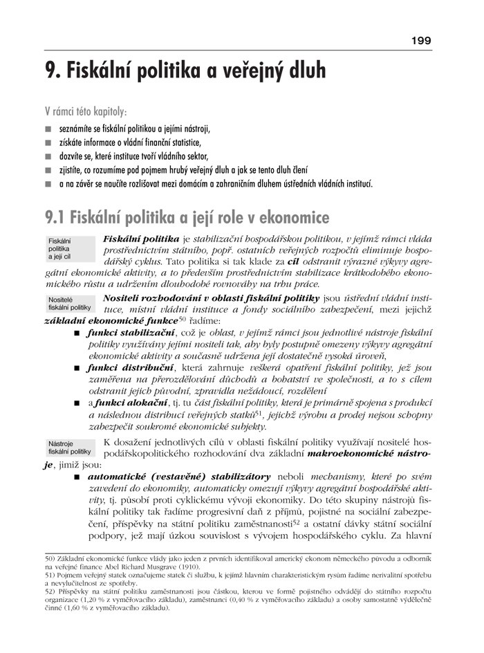 Autor se věnuje základním souvislostem makroekonomické analýzy a analýze vnitřní a vnější ekonomické rovnováhy. Součástí kapitol obsažených v oddílu věnovaném analýze vnitřní a vnější rovnováhy je také „Dodatek“, v němž na konkrétním příkladu České republiky analyzuje vývoj vybraných makroekonomických ukazatelů, jimž je daná kapitola věnována.