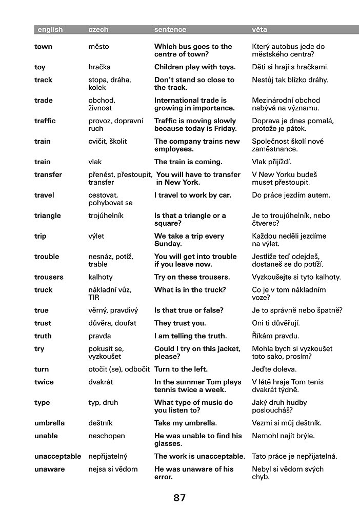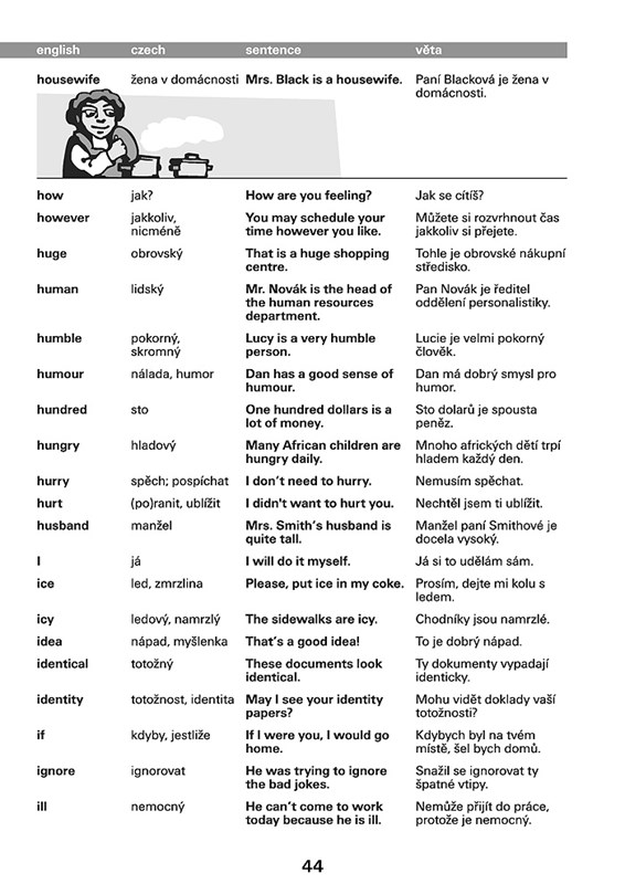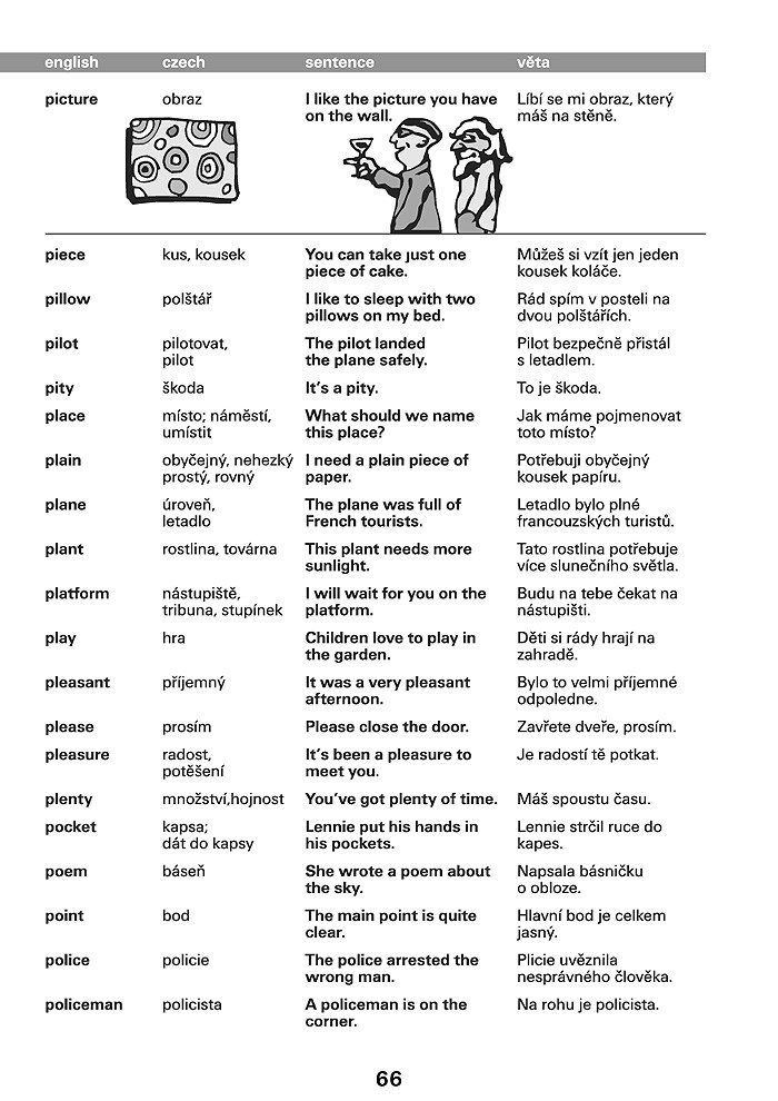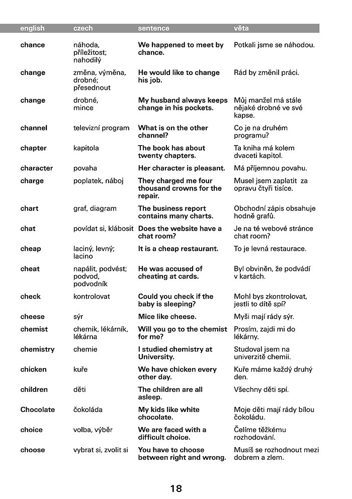 Anglická slovíčka jsou v knize řazena abecedně. Za každým z nich je uveden český překlad. U každého slova následuje věta. Uvědomíte si tak vazby a kontext, jak bývá dané slovo nejčastěji užíváno.