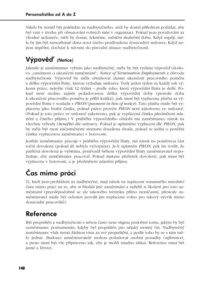 Kniha je určena manažerům a personalistům. Nabídne jim 70 nejdůležitějších termínů z oblasti personalistiky, které by měli nejen znát, ale především jim rozumět. Hesla jsou řazena abecedně a u každého následuje podrobný výklad s příklady z praxe (jaké skutečnosti se daný pojem týká). Termíny jsou navíc v řadě propojeny klíčovým odkazem. Čtenář si tak vytvoří komplexní pohled.