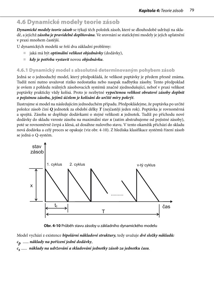 Jak autoři uvádějí, největší úspory v logistických činnostech je možné hledat v oblasti zásob, v oblasti ekonomického využívání i obnovování zařízení. Po krátkém zopakování základů logistiky a úvodu do projektového managementu se tedy publikace zabývá teorií zásob, teorií front a teorií obnovy. Kromě toho se čtenář seznámí se základy síťové analýzy nebo s problematikou výběru optimální varianty z většího počtu řešení. Samotný text je navíc doplněn: