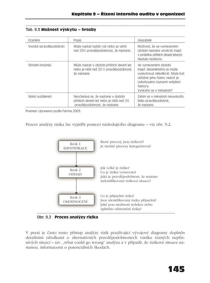 Publikace se věnuje hlavním metodám používaným v interním auditu. Autoři se snaží přiblížit interním auditorům výhody jednotlivých metod a ukázat jejich praktický dopad. V dalších částech publikace jsou prezentovány standardy pro výkon auditorské práce, její etická dimenze a vztah k vnitřní kontrole, jakož i těsná spojitost interního auditu s řízením rizik. Věrohodnosti textu hodně napomáhá skutečnost, že autoři se problematice interního auditu dlouhodobě věnují a se čtenářem se podílejí nejen o odborné poznatky, ale i o vlastní zkušenosti spojené s výkonem auditorské profese.