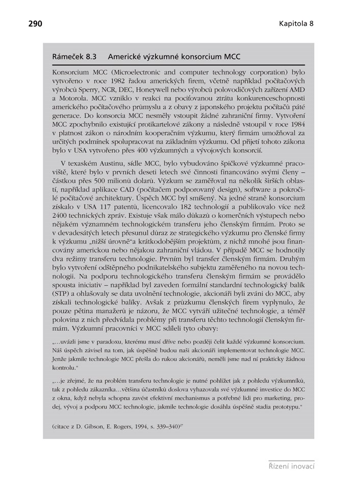 - ucelený systém pro integraci řízení technologických, tržních a organizačních změn, jsou v ní tedy uvedeny poznatky např. o řízení výzkumu a vývoje, řízení výroby a operací, řízení marketingu, produktový nebo organizační rozvoj