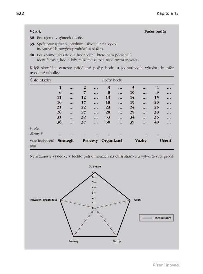 Autoři poskytují jasný, systematický a integrovaný systém, který zájemce tímto složitým tématem provede. Kniha si klade za cíl vybavit čtenáře znalostmi potřebnými pro pochopení inovací a dovednostmi potřebnými pro řízení inovací na operační i strategické úrovni. Kniha Řízení inovací najde široké uplatnění u manažerů z praxe jak v sektoru průmyslové výroby, tak v sektoru služeb. Je vhodným učebním textem pro studenty postgraduálních programů MBA nebo vysokoškolských oborů zaměřených na řízení technologií, řízení inovací a podnikatelství.