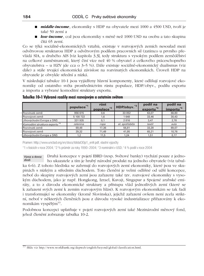 Předkládaná učebnice představuje jeden z úspěšných pokusů o definování a analyzování čtyř částí světové ekonomiky, a to: světová ekonomika jako systém, mezinárodní ekonomické vztahy, prvky světové ekonomiky a postavení České republiky ve světové ekonomice. Autoři se věnují vymezením světové ekonomiky a poskytují zároveň čtenářům názornou i grafickou podobu fungování světové ekonomiky včetně zpracování tématu fungování národních ekonomik jednotlivých států. Velmi originálně je zpracována část, která se věnuje světové ekonomice a biosociálním systémům, kde je analyzován demografický vývoj, ekologické problémy současnosti a problém trvale udržitelného rozvoje. Důležitou součástí mezinárodních ekonomických vztahů je pohyb výrobních faktorů v jejich různých podobách, které autoři objasňují s hlubokou znalostí problematiky.