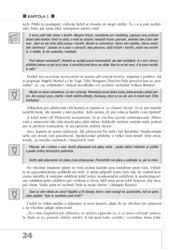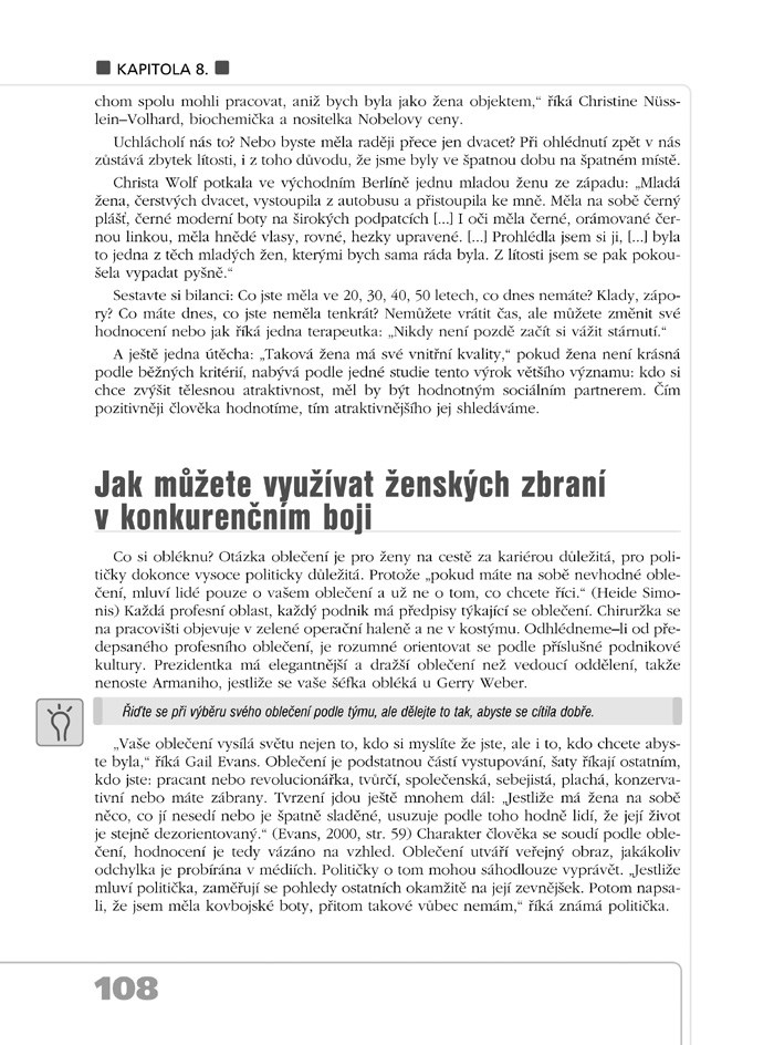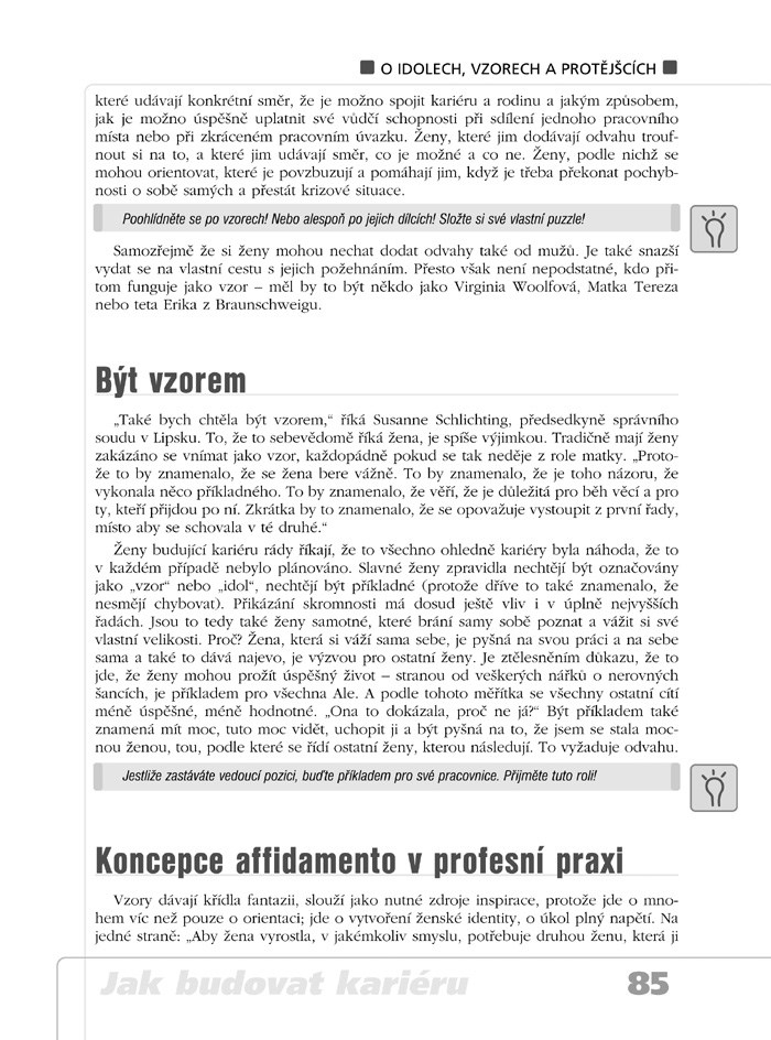Autorky prozrazují strategie úspěšných žen z oblasti politiky a ekonomiky. Efektivní strategie při budování a rozvoji kariéry představují tipy, nová pravidla hry a modely – odpozorované při fotbale stejně jako při jazzu, vyzkoušené v profesní praxi nejrůznějších žen.
