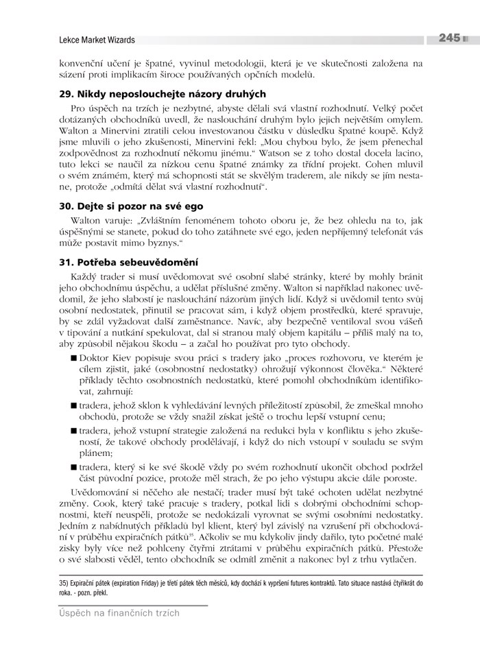 Kniha je určena nejen pro začátečníky, ale pro každého, kdo chce uspět v obchodování na burze. Je zde plno praktických rad a zkušeností lidí, kteří opravdu obchodovali a obchodují a kteří si z burzy udělali velmi lukrativní byznys. Pokud tedy přemýšlíte o podobném postupu, vřele Vám knihu doporučuji.