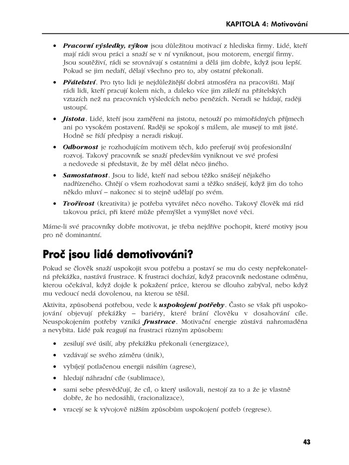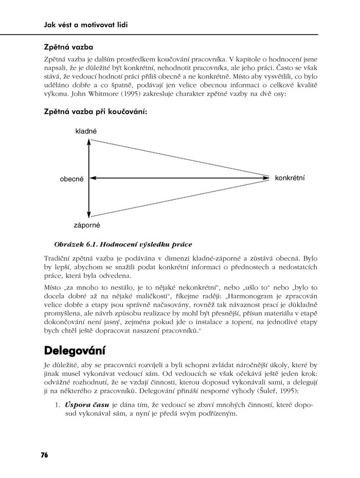 Publikace, kterou držíte v ruce, vám pomůže uvědomit si sebe sama a vylepšit své dovednosti. Poučíte se, jaké existují styly řízení a prostřednictvím testů poznáte, který by mohl být pro vaši situaci a povahu ten nejschůdnější. Zopakujete si i prohloubíte znalosti, jak definovat úkol, jak jej předat, kontrolovat i korigovat.
