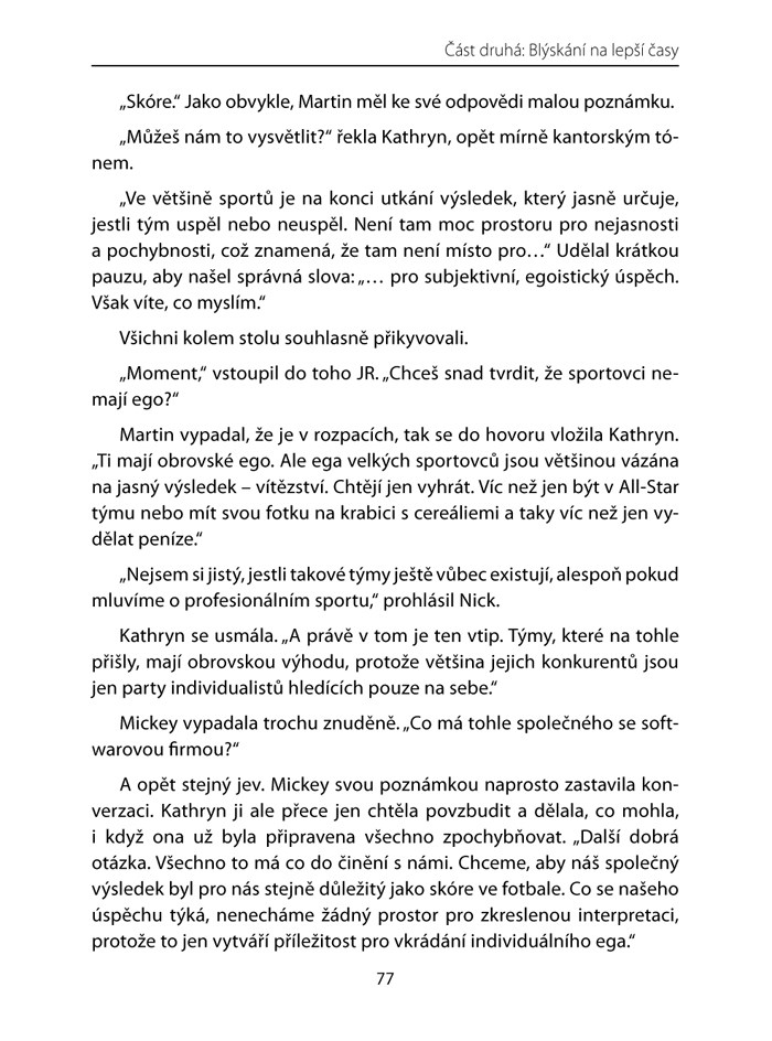 Kathryn Petersen, generální manažerka společnosti DecisionTech, čelí naprosté krizi vedení. Čeká ji sjednocení týmu, který je v tak bídném stavu a chaosu, že hrozí kolaps celé firmy. Uspěje? Vyhodí ji? Zkrachuje firma?