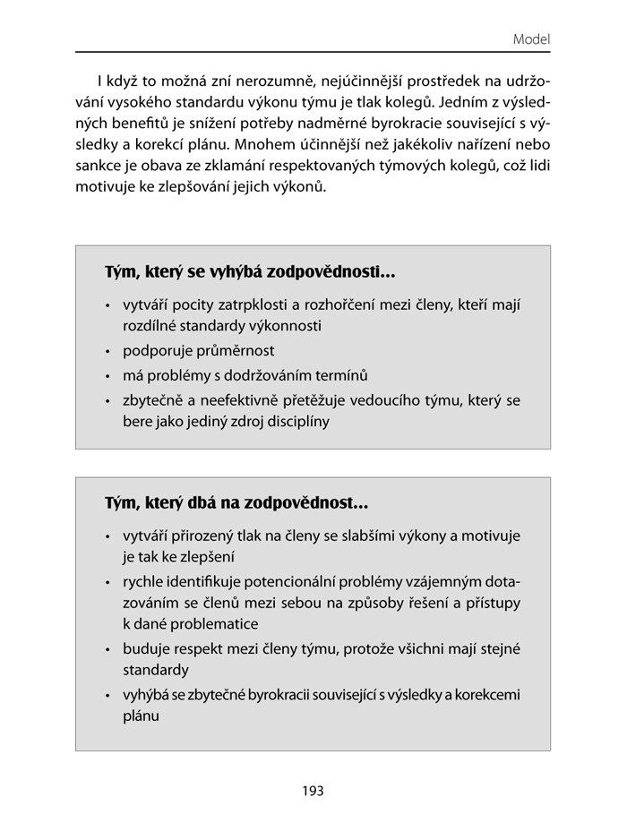 - krátké shrnutí metody, kterou používá vedoucí týmu manažerů, s nimž nás příběh v knize seznamuje.