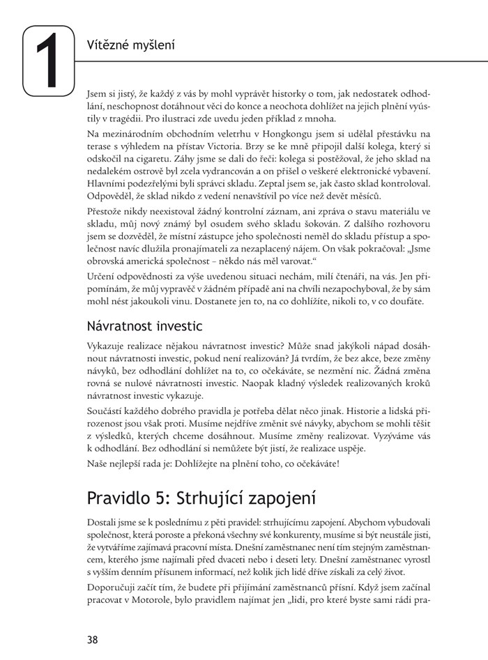 „Finkelsteinova kniha je výjimečná hned z několika důvodů. Za prvé – neobsahuje jenom názory a zkušenosti jediného autora. Místo toho Finkelstein posbíral ty nejlepší poznatky od řady malých podnikatelů a konzultantů, kteří sami prožili situace, jež popisují. Za druhé – autor se důsledně zaměřuje na problematiku malých, nanejvýše středních firem. Nezatěžuje vás náročnými recepty, které jsou použitelné leda tak v nadnárodních korporacích, ale píše na míru jednotlivcům a začínajícím firmám. No a za třetí – Finkelstein i jeho spoluautoři ze zásady neteoretizují, ale dívají se na věc prakticky. Místo odtažitého, akademického stylu dostanete na talíř jasné rady – co dělat tady a teď. Díky tomu je Finkelsteinova kniha cenným pomocníkem každého malého podnikatele – a může se stát jednou z vašich nejlepších investic v tomto roce.” – Martin Jaroš, ředitel marketingové komunikace společnosti T-Mobile
