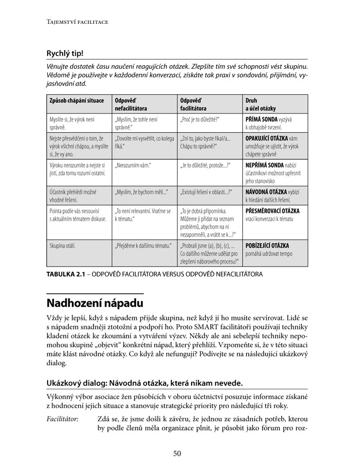 Nedaří se vám dosáhnout úspěchu v práci se skupinami? Chcete poznat tajemství facilitačního procesu? Odhalit techniky, které používají ti nejúspěšnější facilitátoři? Kniha Tajemství facilitace vám představí metodu SMART facilitace (Structured Meeting and Relating Techniques – strukturované techniky setkávání a navazování vztahů), jedenáct principů, jejichž aplikací dosáhnete stálých a opakovatelných výsledků. Přesvědčíte se, že facilitace skutečně funguje.