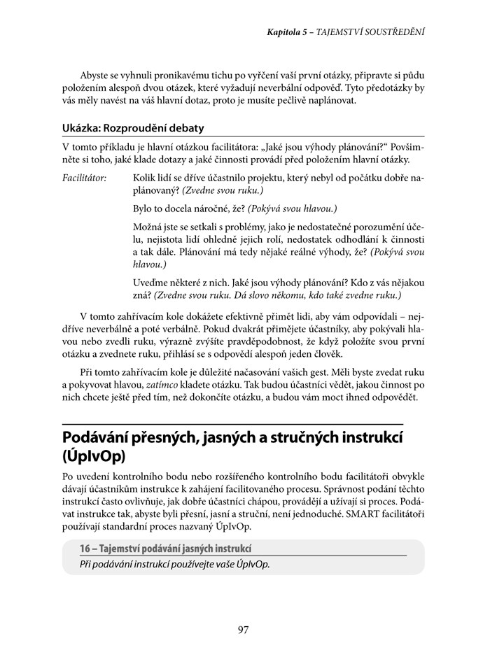 • Ucelenou metodologii – metody pro facilitaci jakékoliv situace, krok za krokem.