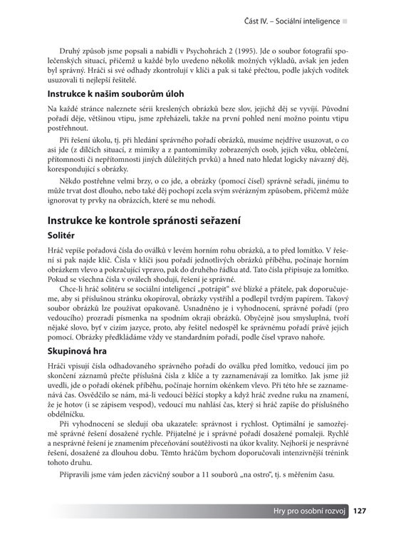 - hry rozvoje sociální inteligence vhodné pro výcvik a trénink,