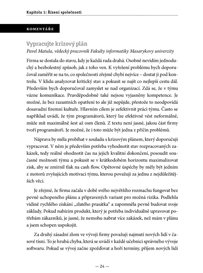 Kniha obsahuje případové studie zaměřené na nejrůznější kritické situace v oblasti řízení lidí, vztahů na pracovišti, řízení firmy a strategického plánování. Texty konzultanta v oblasti managementu Jakuba Noska, které dříve vycházely v ekonomickém měsíčníku BIZ, doplňují komentáře manažerů a podnikatelů z nejrůznějších sfér byznysu.