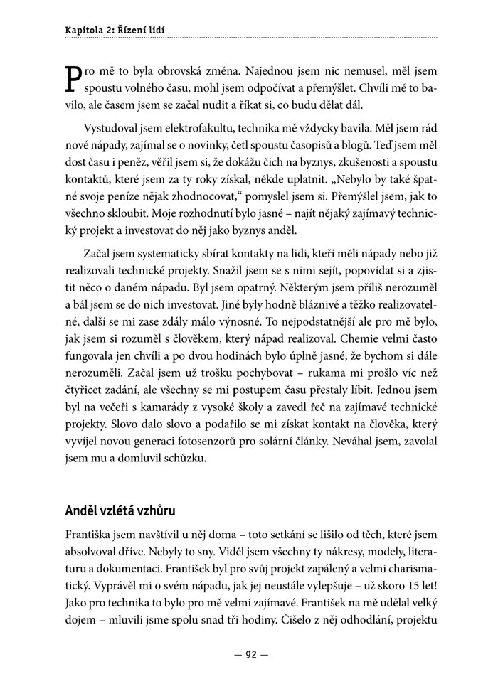 „Manažerské katastrofy ukazují obrovskou pestrost možností a nutné kreativity, která s podnikáním souvisí. Podnikatelé a manažeři v české kotlině nepředstavují právě populární druh. Autor knihy poukazuje na některé aspekty podnikání, které si zaslouží mimořádnou pozornost. Valná většina podnikatelů-manažerů měla dobré úmysly, ale nebyla úspěšná. Vynaložili však maximální úsilí, aby situaci zvládli. Kdo si prošel něčím takovým, stane se jiným člověkem. Není jisté zda lepším, nepochybně však s větším respektem k životu.“