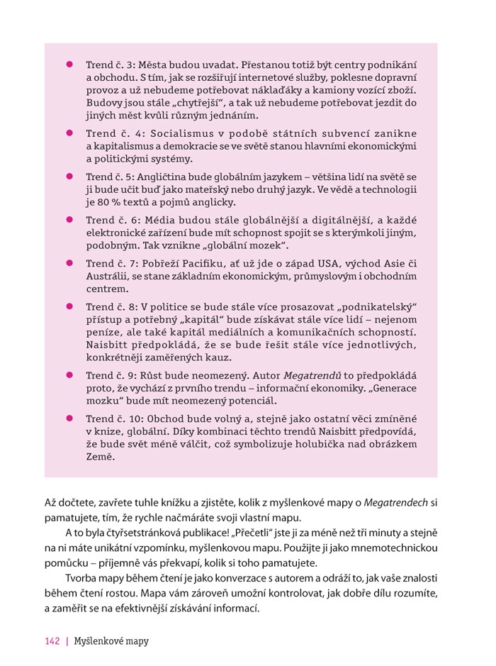 Myšlenkové mapy jsou nejefektivnější současnou pomůckou pro přemýšlení. Neuvěřitelně vylepší vaši inteligenci, kreativitu, komunikační dovednosti, koncentraci a paměť – každý rozměr vaší výkonnosti. Jsou klíčem, který odemkne vaše schopnosti a potenciál.