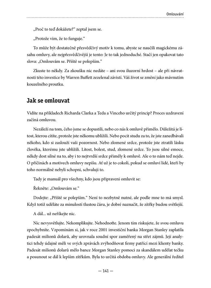 „Pokud věříte, že jste svých úspěchů dosáhli právě proto, jací jste, možná při čtení této myšlení provokující Marshallovy knihy zjistíte, že je to vlastně navzdory tomu, jací jste. Marshall na jednoduchých praktických příkladech a situacích ukazuje na přístupy a chování (a jejich nuance), které výrazně oslabují nebo omezují vliv jinak velmi úspěšných, znalých a charismatických lídrů. Obsah této knihy je ukotven v hluboké profesní a lidské zkušenosti. Poskytuje tichou vnitřní reflexi, inspiraci a návod, jak dosáhnout trvalé žádoucí změny ve vlastním životě i u lidí kolem vás.“