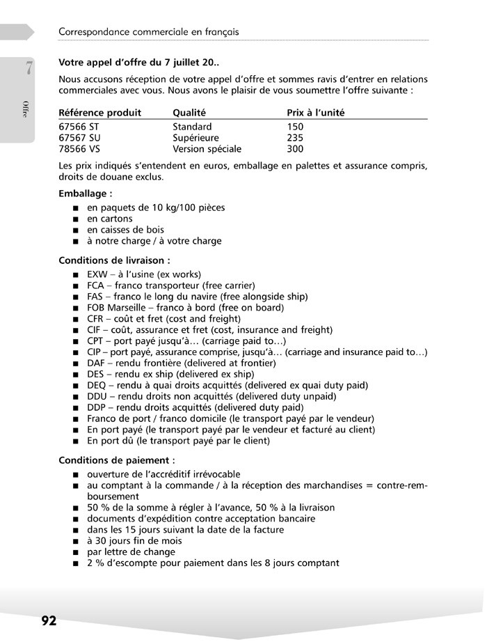 Kniha Obchodní korespondence ve francouzštině vám poskytne všechny důležité typy vzorů, které se v oblasti exportu či importu používají takřka denně: