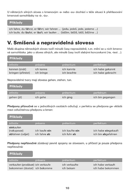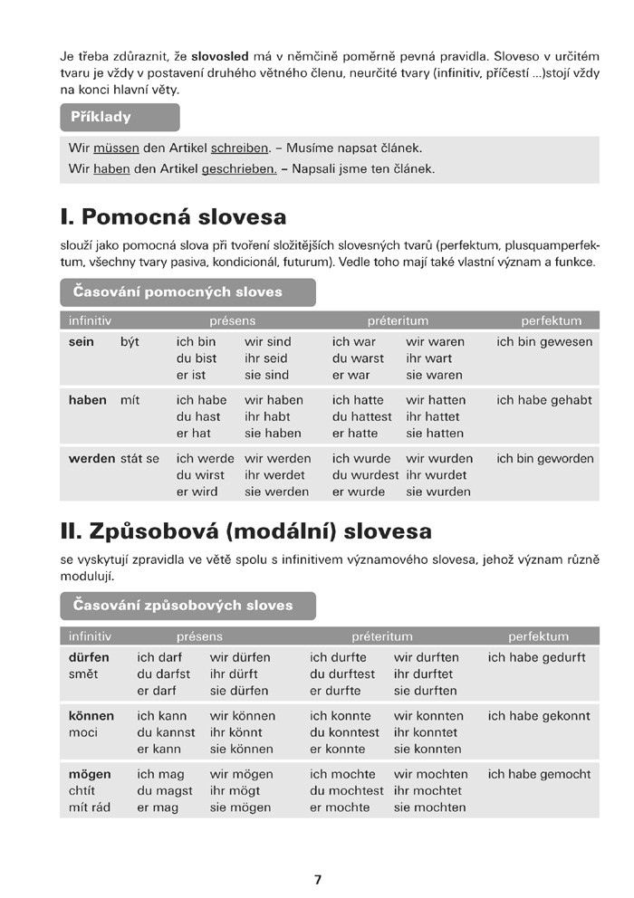 Mluvnice vám poskytne základní informace ohledně použití pomocných sloves, způsobových sloves, slabých a silných sloves, smíšených a nepravidelných sloves, podmiňovacího způsobu, budoucího času a trpného rodu v němčině.