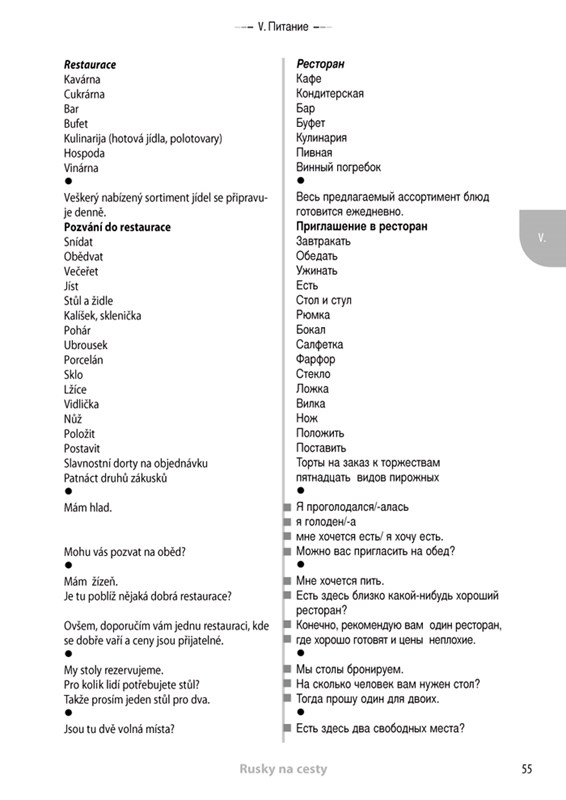 Kniha je určena lidem, kteří mají v úmyslu cestovat do Ruska, využijí ji turisté, podnikatelé i studenti. Příručka obsahuje základní obraty potřebné k dorozumění během cesty, po dobu pobytu v zahraničí nebo v českém prostředí při jednání s cizincem.