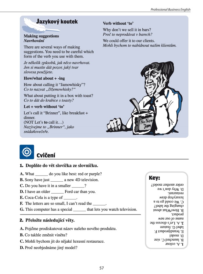 Knihu doplňují tři plakáty, které umožní čtenáři mít denně před očima slovní zásobu týkající se služebních cest, financí a kariéry. Opakovaným pohledem si lehce, ba až nevědomky vštípí požadované znalosti.