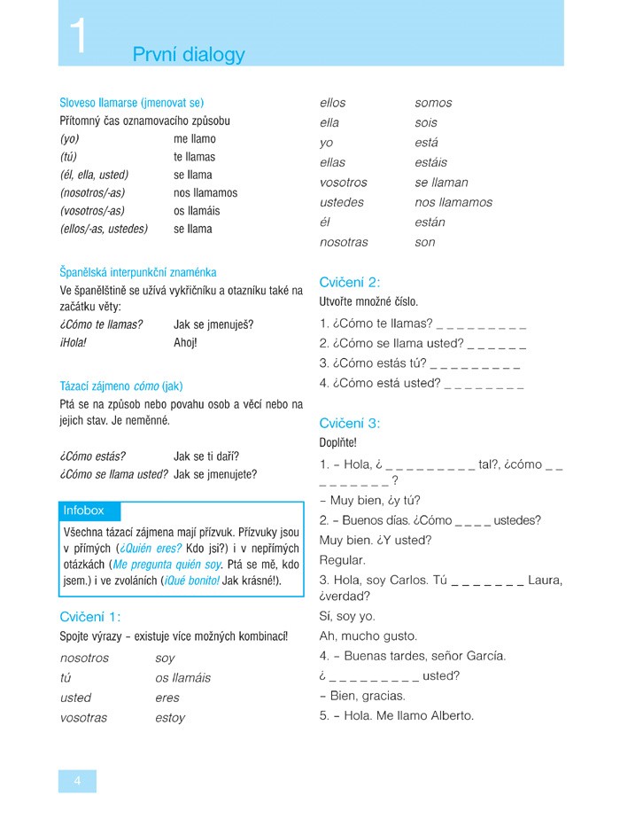 Ve 24 lekcích se naučíte základní gramatiku a osvojíte si slovní zásobu potřebnou v běžné komunikaci. Díky rozmanitým textům přibližujícím obvyklé situace (na nádraží, v hotelu, na nákupu, u lékaře, v bance, s přáteli) budete vědět, jak v dané chvíli reagovat. V infoboxech pak budete průběžně seznamováni s jazykovými zvláštnostmi, místními reáliemi a způsobem života ve Španělsku. Samozřejmostí jsou také rozmanitá cvičení, díky kterým si lehce zopakujete to, co jste se již naučili.