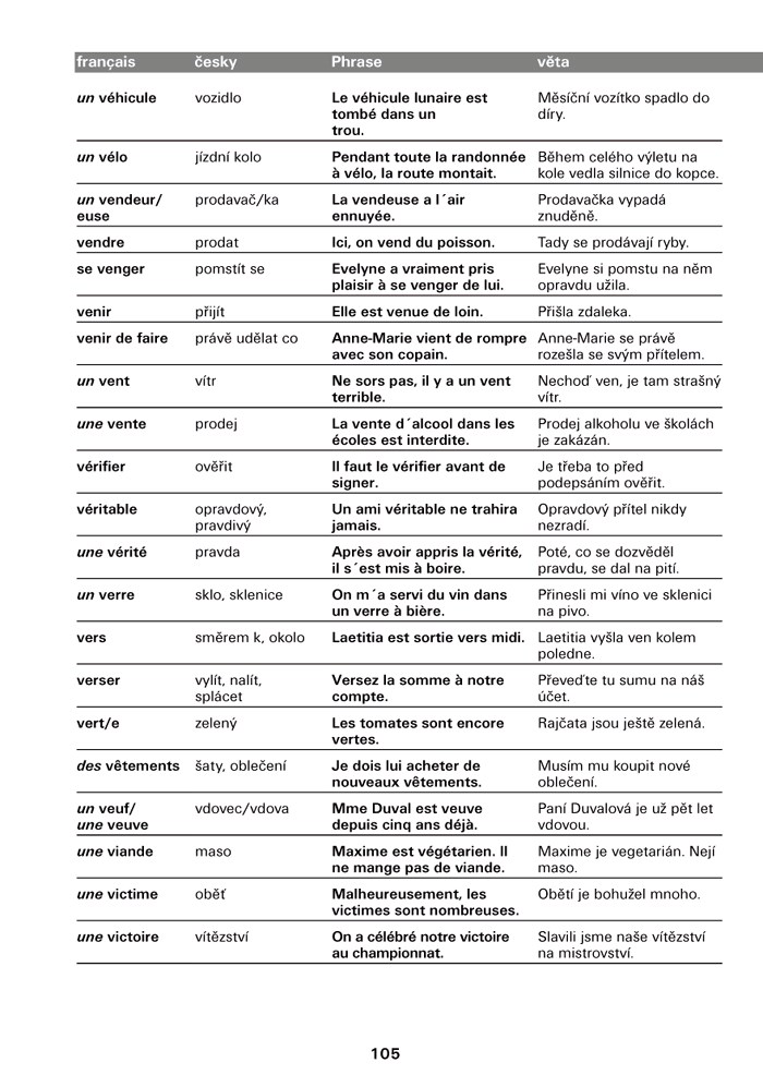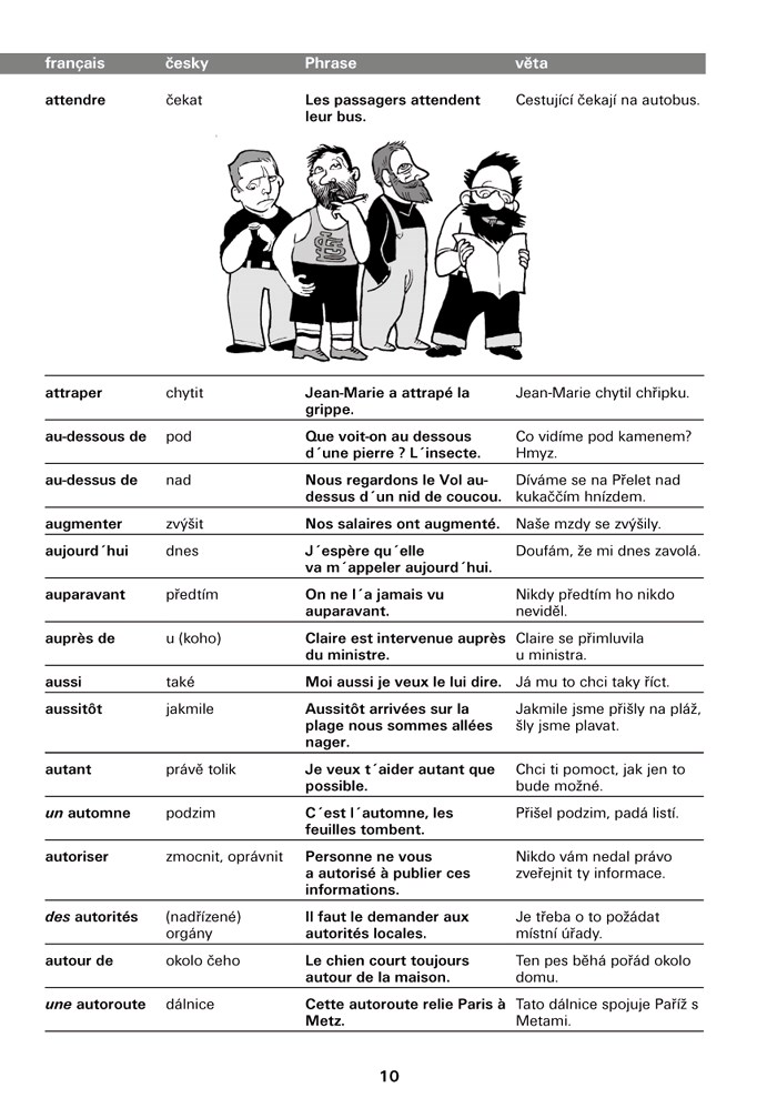 Příručka a CD MP3 jsou určeny pro studenty francouzštiny ať již jde o začátečníky, nebo středně pokročilé. Francouzská slovíčka jsou v knize řazena abecedně. Za každým z nich je uveden český překlad, následuje typická francouzská fráze s překladem, aby si čtenář upevnil za-řazení a smysl daného výrazu. Uvědomí si tak vazby a kontext, jak bývá dané slovo nejčastěji užíváno.