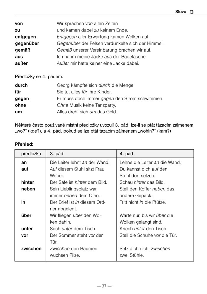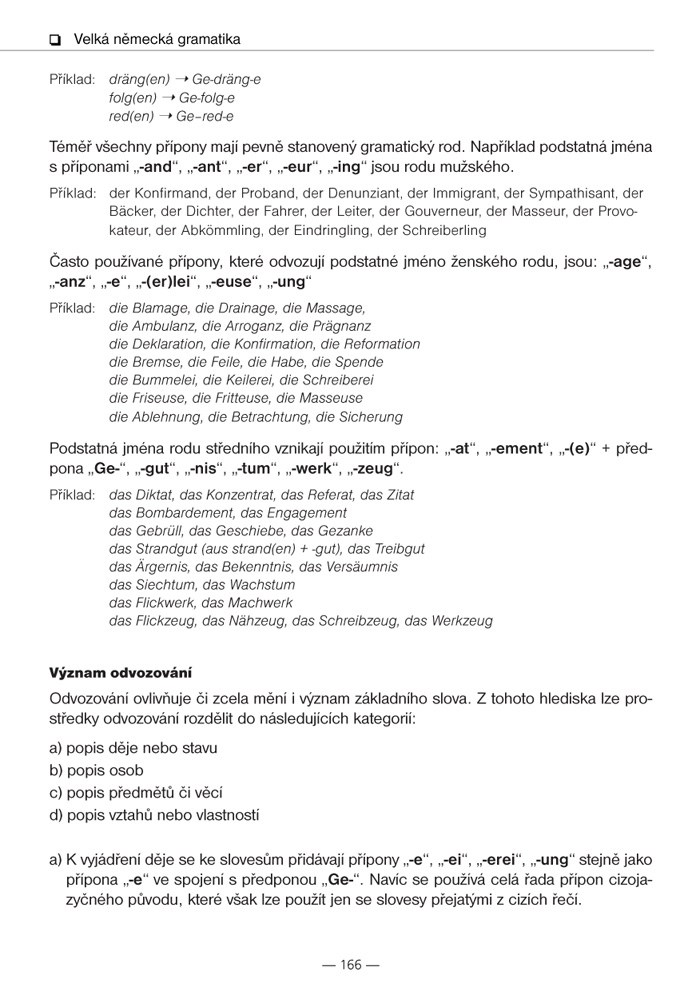 Všechny probírané gramatické jevy jsou jednoduše znázorněny na příkladech ze současné němčiny. Autoři vybrali příklady z denního tisku, z časopisů a dalších autentických materiálů, které již zohledňují pravidla nového německého pravopisu.