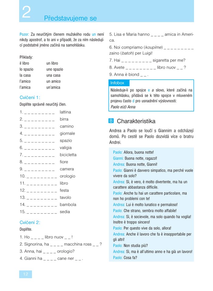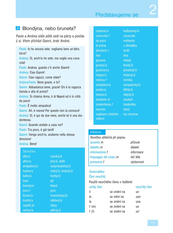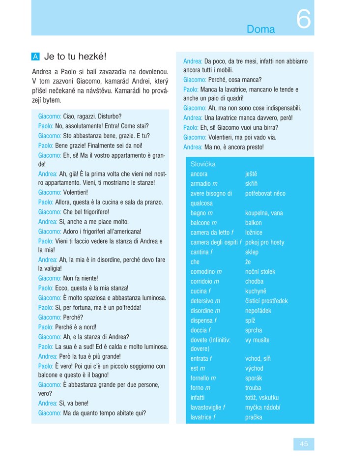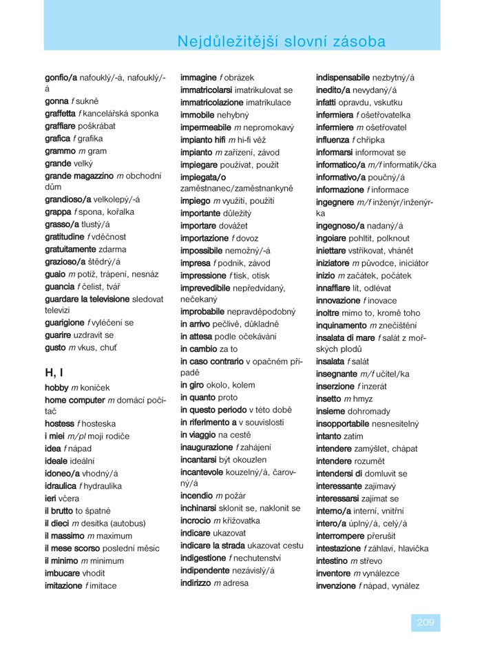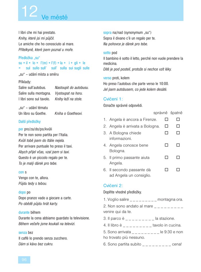 Ve 24 lekcích se naučíte základní gramatiku a osvojíte si slovní zásobu potřebnou v běžné komunikaci. Díky rozmanitým textům přibližujícím obvyklé situace (na nádraží, v hotelu, na nákupu, u lékaře, v bance, s přáteli) budete vědět, jak v dané chvíli reagovat. V infoboxech pak budete průběžně seznamováni s jazykovými zvláštnostmi, místními reáliemi a způsobem života v Itálii. Samozřejmostí jsou také rozmanitá cvičení, díky kterým si lehce zopakujete to, co jste se již naučili.