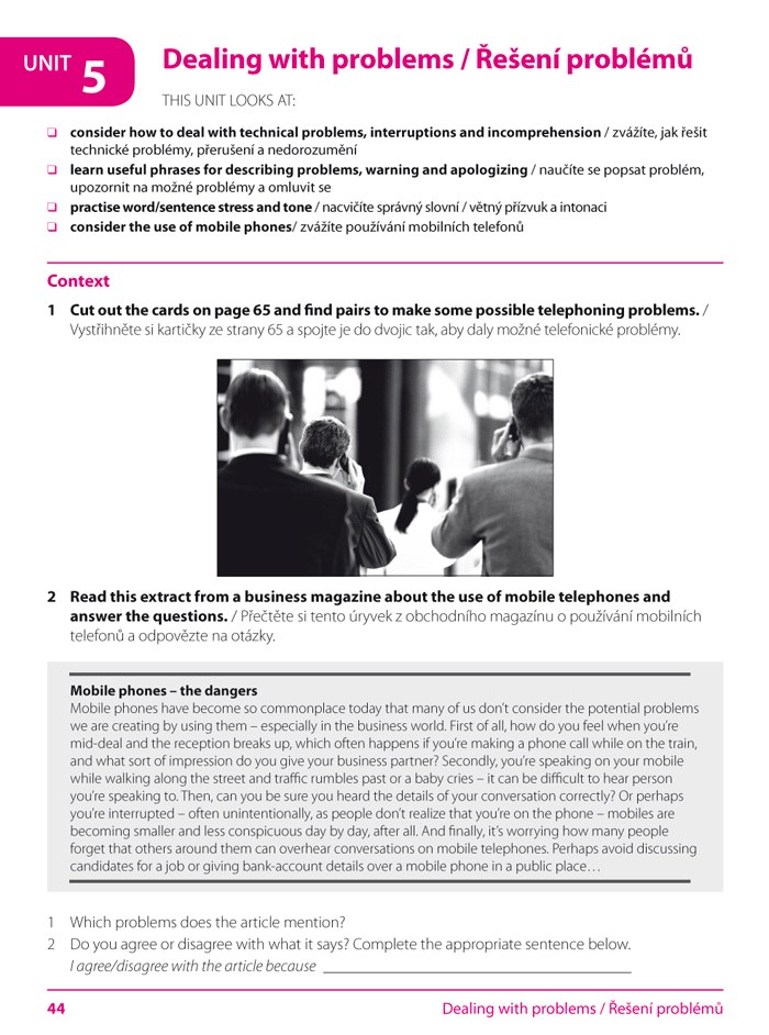 Cílem této publikace je naučit mírně pokročilé uživatele AJ nejdůležitějším dovednostem spojeným s telefonováním: volání a přijímaní hovorů, zanechávání vzkazů na záznamníku, vyřešení problémů při volání, provedení konferenčních hovorů.