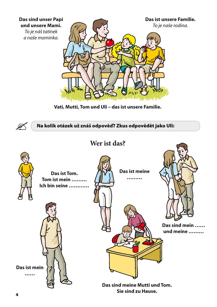 Tato zábavná učebnice je určena pro děti mladšího školního věku. Ve dvanácti kapitolách děti společně s ilustrovanými postavičkami Uli a Tomem zažijí jeden radostný rok ve světě německého jazyka: seznámí se s německou rodinou, pojedou na výlet, na nákupy, projdou si dům i školu, prožijí svátky a letní prázdniny.