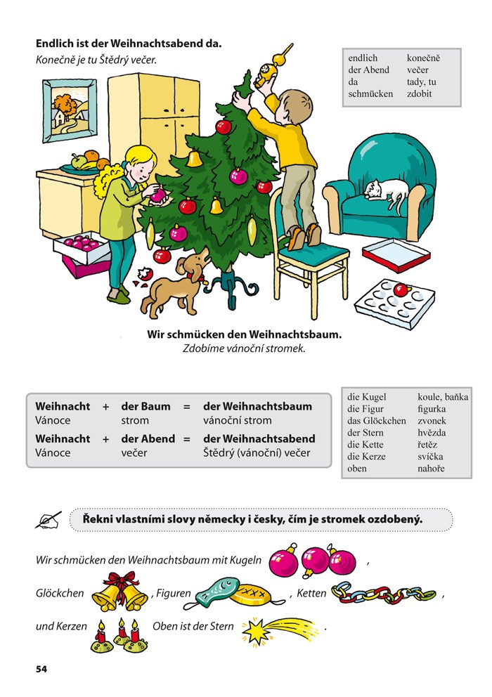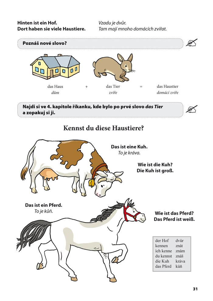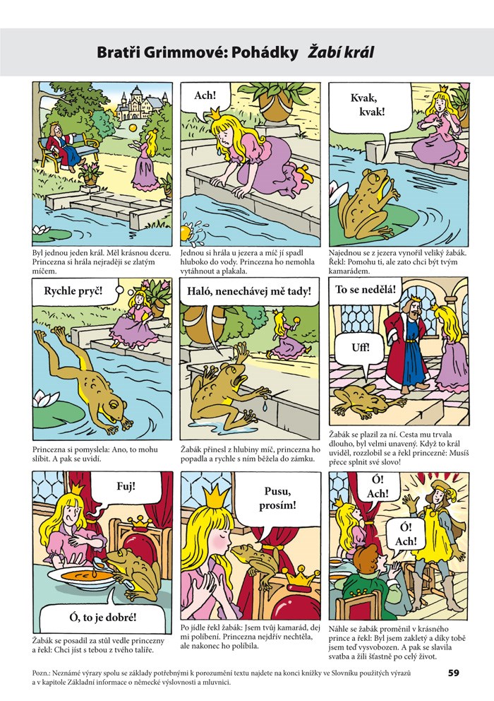Na konci publikace je vedle nezbytného slovníku použitých výrazů zařazeno základní poučení o německé výslovnosti a zjednodušený přehled německé gramatiky jako pomůcka rodičům malých studentů.