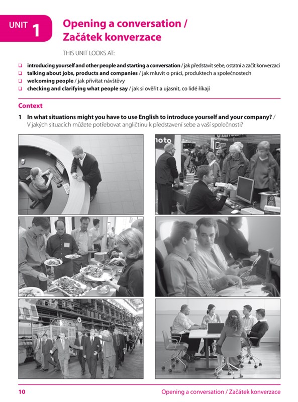 Cílem této publikace je naučit mírně pokročilé uživatele AJ nejdůležitějším pravidlům anglické společenské konverzace v obchodním prostředí. Naučíte se, jak představit sebe a své kolegy, navázat kontakt s obchodním partnerem, domluvit si schůzku a vypořádat se s nedorozuměním.