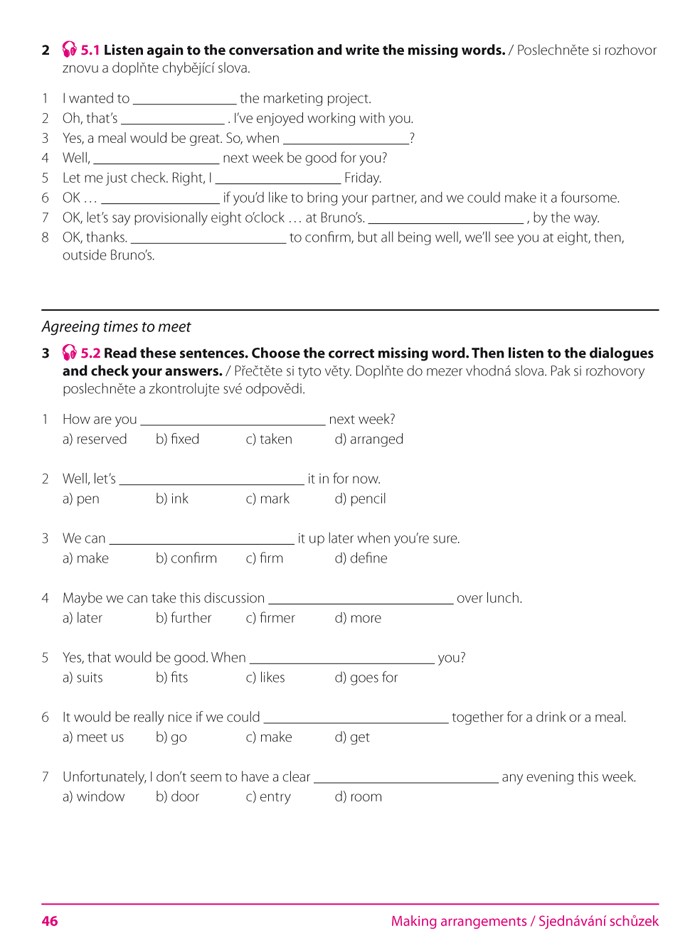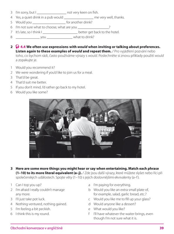 Na přiloženém audio CD najdete ukázky společenských dialogů z obchodního prostředí, které poslouží jako šablony či osnova pro přípravu vlastních rozhovorů.