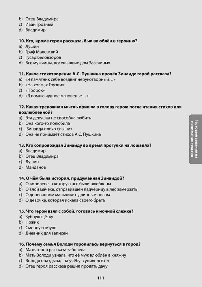 Zjednodušené verze známých povídek o lásce jsou určeny pokročilým studentům ruštiny. Díky nim se studenti nejen seznámí s mistrovskými díly klasiků ruské literatury, ale rozšíří si slovní zásobu, rozvinou své schopnosti porozumění mluvenému slovu a zdokonalí se ve výslovnosti.