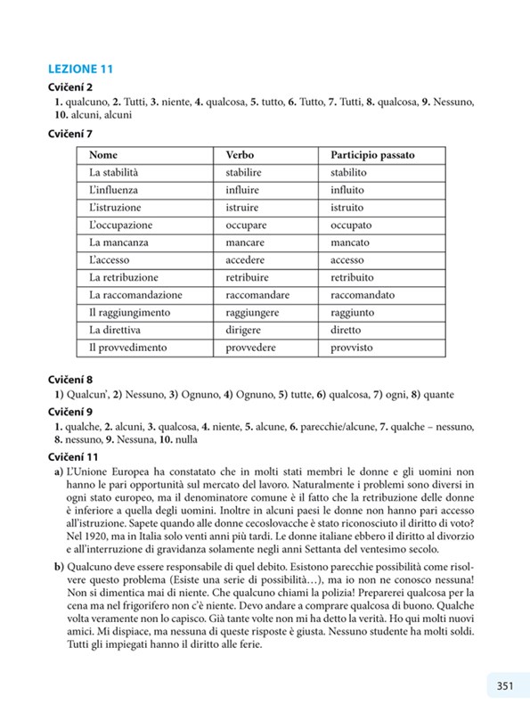 Učebnice současné italštiny, 2. díl, navazuje na úspěšnou první část stejnojmenné učebnice. Publikace je určena všem zájemcům o získání hlubších znalostí italského jazyka. S její pomocí dosáhnete úrovně C1-C2 Evropského referenčního rámce. Učebnice je rovněž vhodná pro samouky, správnost provádění cvičení si mohou ověřit pomocí klíče. Každá lekce obsahuje: