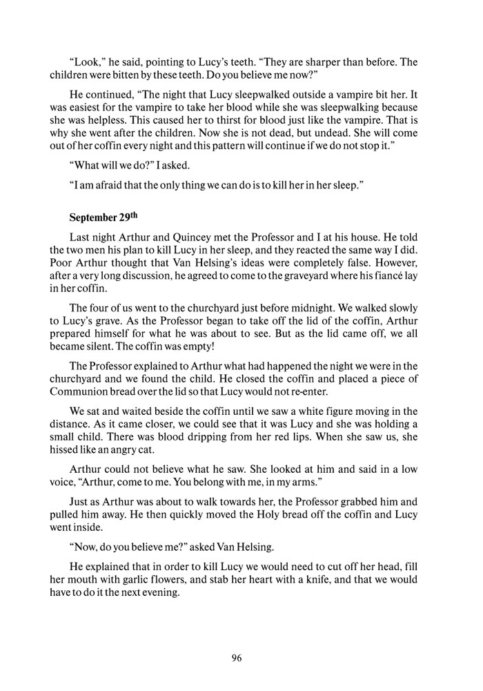 Román od irského spisovatele Brama Stokera je psaný formou deníků a dopisů. Vydobyl si v celém světě nebývalý úspěch, dočkal se divadelních i filmových zpracování. Proto jsme jej vybrali a zpracovali jako zjednodušenou verzi určenou pro pokročilé studenty anglického jazyka.