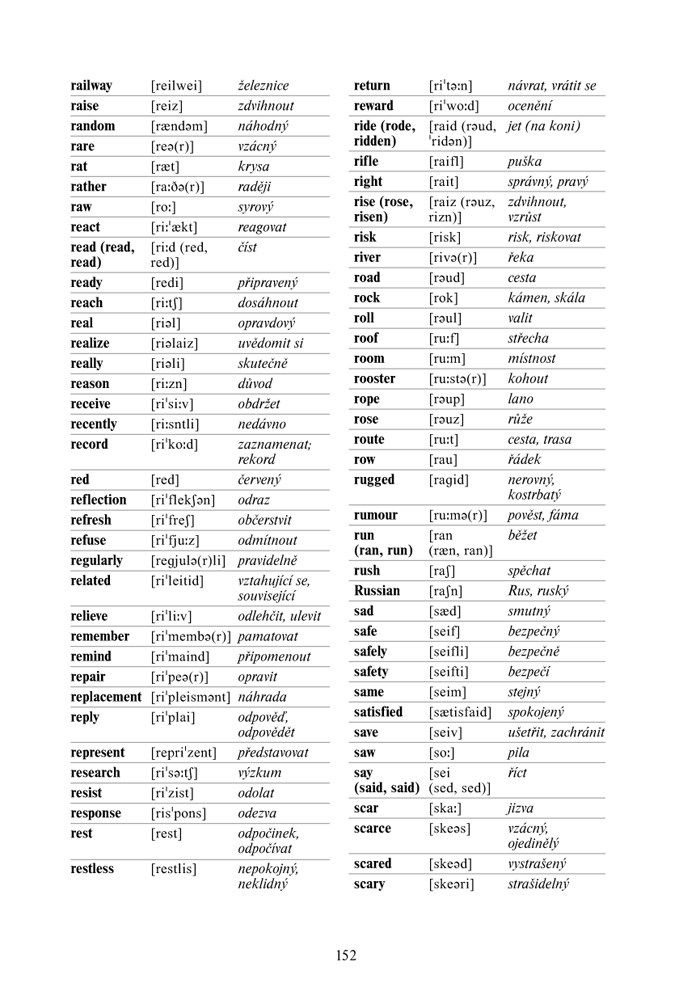 - slovníček s fonetickým přepisem na konci knihy