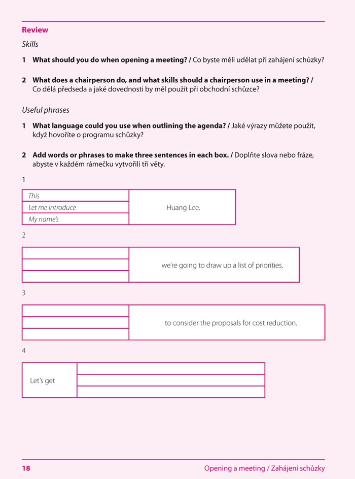 Publikace je určena pro mírně pokročilé uživatele AJ, kteří se potřebují zdokonalit ve vedení obchodního jednání s anglicky mluvícími partnery. Dozvíte se například: