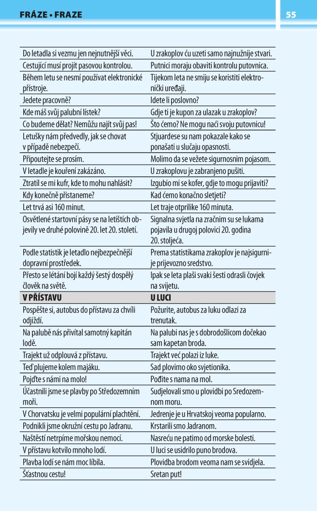 Každý tematický celek je doplněn typickými frázemi. Na konci knihy se nachází souhrnný slovníček.
