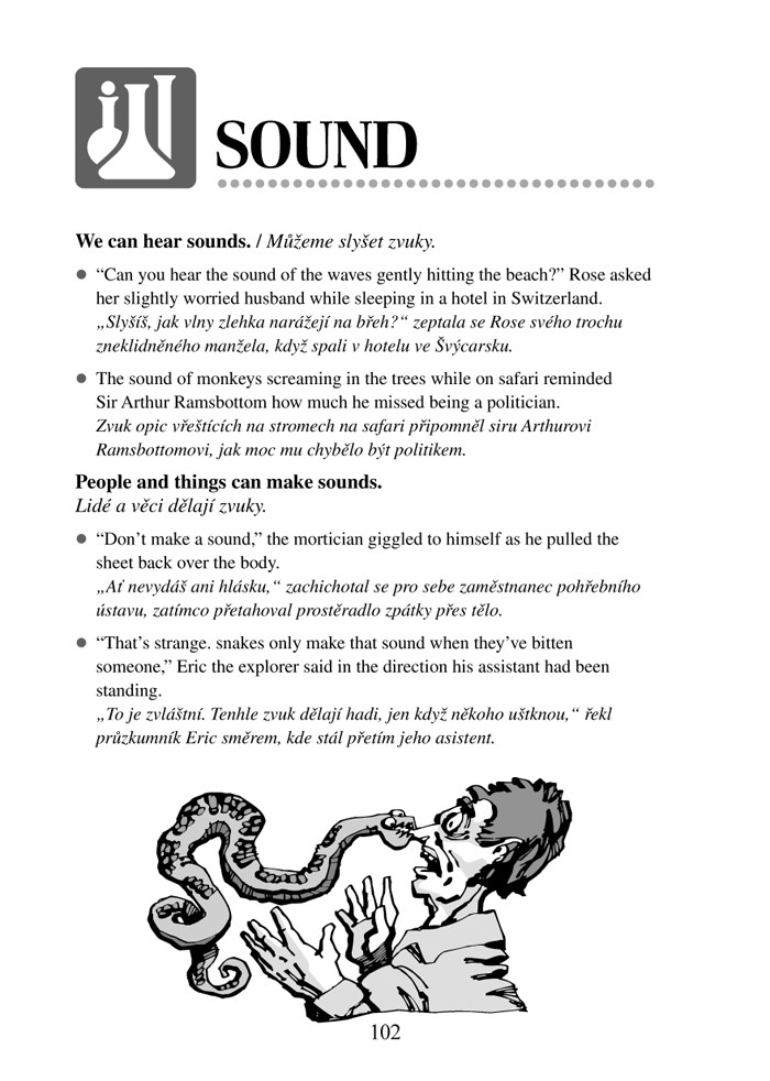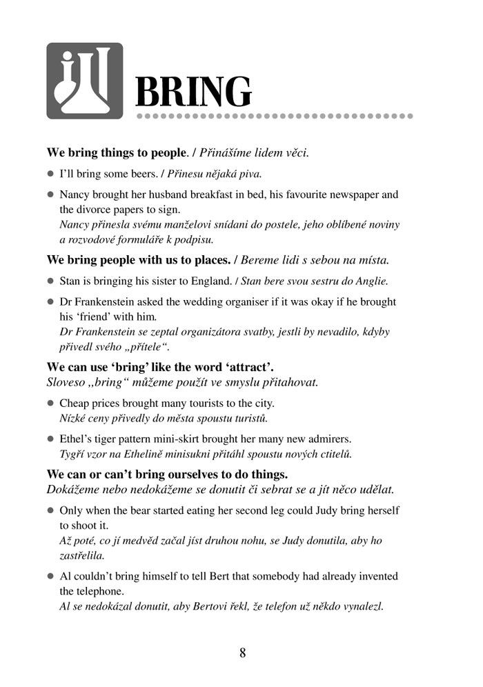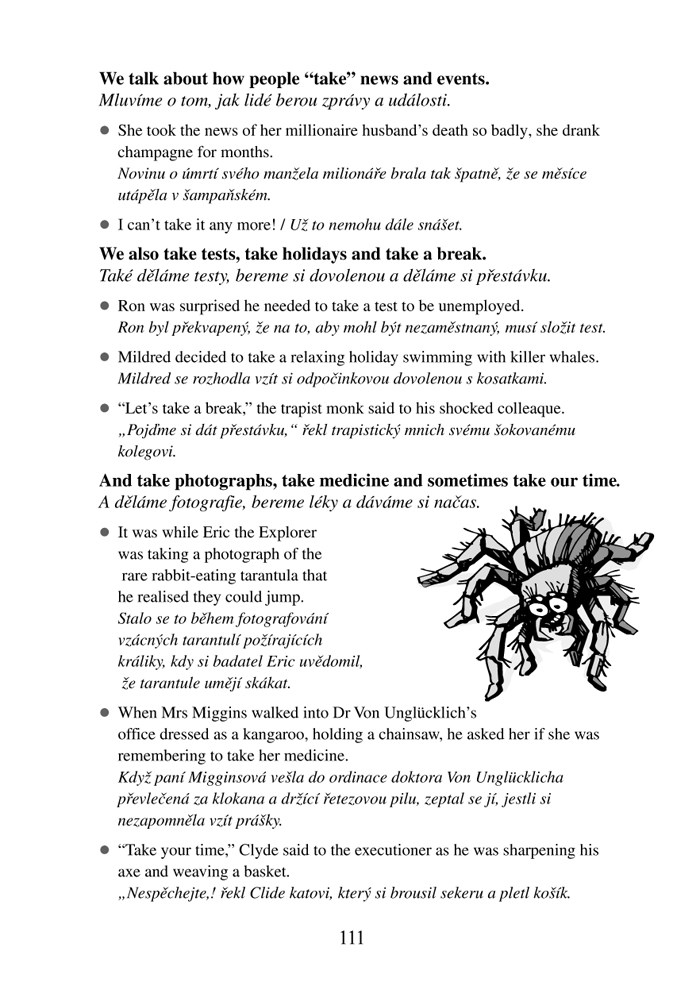 Látka je podána svižně a zábavně. Na takových příkladech, aby vás vyprovokovaly a donutily si fráze dobře zapamatovat.