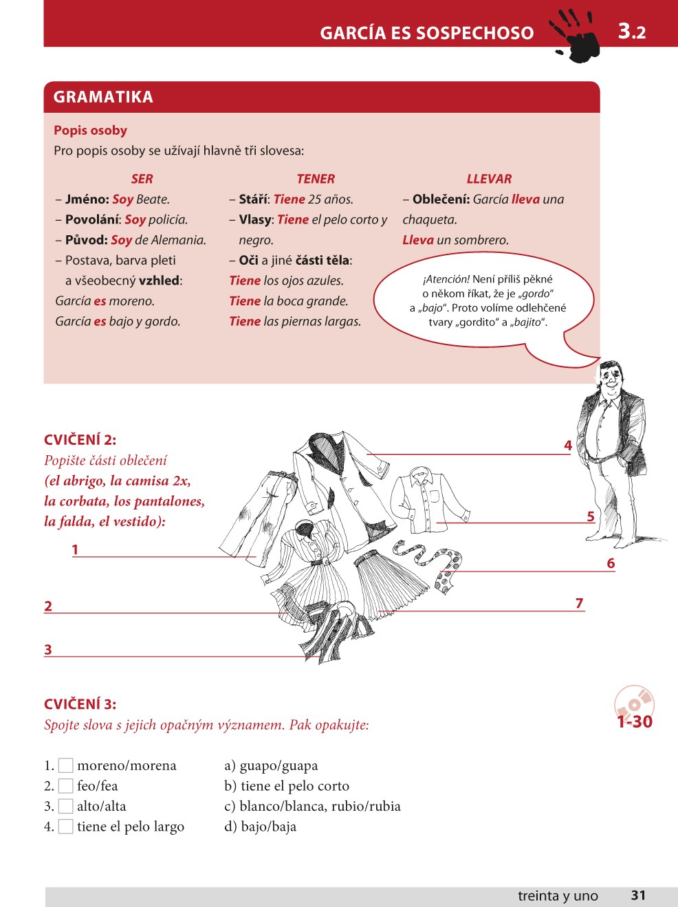 Španělsky se můžete učit způsobem velice zábavným a napínavým, a to čtením a luštěním napínavých detektivních příběhů. S jazykovým kurzem v přehledných třicetiminutových celcích dosáhnete úrovně A2. Nepotřebujete žádné předběžné znalosti: Sledujte detektiva Garcíu v 10 lekcích a budete překvapeni, jaké pokroky děláte! Naučíte se dobře španělsky a navíc vyřešíte kriminální případ. Detektiv García vám učení ulehčí radami, praktickou gramatikou a napínavými cvičeními k poslechu, opakování, čtení a psaní.