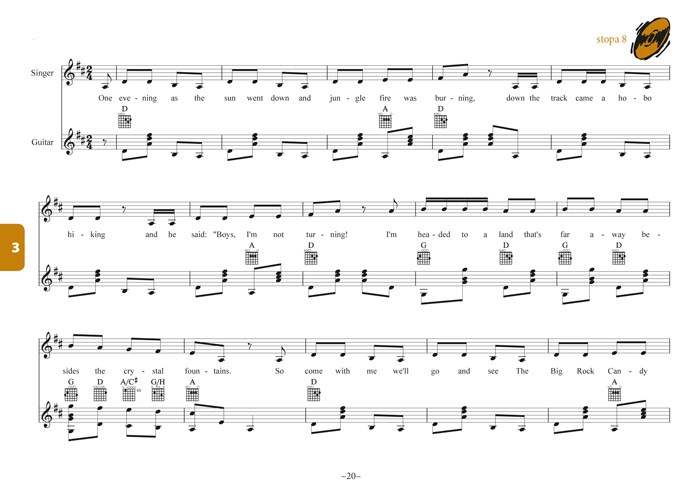 Kniha je sestavena podobně jako Španělské písničky - zpěvník i jazyková učebnice dohromady. Noty zpěvu a part kytary či country souboru slouží muzikantům, původní slova s přebásněným překladem i slovníček důležitých výrazů včetně gramatického koutku jsou určeny pro studenty angličtiny.
