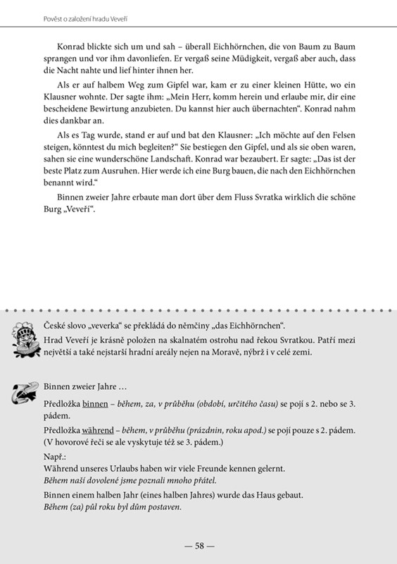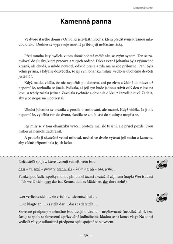 - okomentované gramatické a lexikální jevy, které se vyskytují v textu,