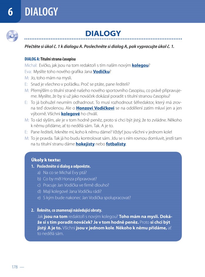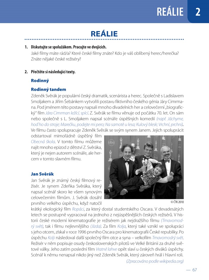 Učebnice je jedinečná tím, že obsahuje komplexní látku pro nácvik češtiny na prahové úrovni B1. Je vhodná pro všechny národnosti: slovanské, západoevropské a asijské studenty, pro univerzity i letní školy. Každá lekce je složena z částí MINIDIALOGY, SLOVNÍ ZÁSOBA, DIALOGY, GRAMATIKA, ČTENÍ, POSLECH, ZOPAKUJTE SI, VÝSLOVNOST, REÁLIE. Nedílnou součástí knihy je i zvukové CD s řadou poslechových cvičení.