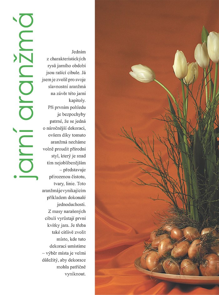 Kniha Aranžování květin seznamuje tvořivé čtenáře s uměním floristiky. Autor úvodem předkládá přehled materiálů a pomůcek, které budete k vaší tvorbě potřebovat. Kniha je rozdělena na roční období a svátky, ke kterým je vhodné připravit zajímavá květinová aranžmá: Valentýn, jaro a Velikonoce, léto, podzim, advent a vánoce. Představuje vám celkem 25 aranžérských projektů, jejichž výsledkem je vždy originální a nápaditá kombinace různých materiálů a rostlin. Kniha obsahuje přes 400 barevných fotografií podrobně dokumentujících vznik jednotlivých aranžmá. Určitě ji oceníte jako inspirativního průvodce světem moderní floristiky. Všechny květinové návrhy jsou originály z dílny Petra Matušky, s mnohými z nich uspěl na floristických soutěžích.