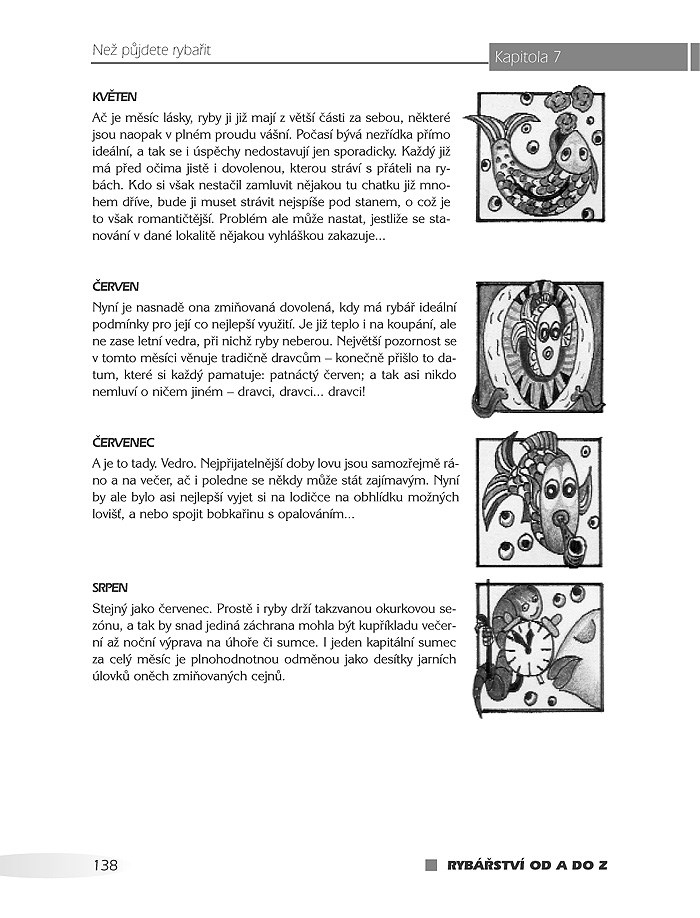 Kniha zahrnuje veškeré oblasti sportovního rybaření - od výběru správného náčiní, přes podrobný popis různých rybářských technik až po obrazový atlas ryb spojený s podrobným návodem, jak a kde lze konkrétní druh ryby nejlépe ulovit. Mimo začátečníků najdou v knize užitečné rady a tipy i pokročilí rybáři, zejména v oblasti přípravy návnad, nástrah a hledání úkrytů ryb. Kniha je doplněna velkým množstvím černobílých kreseb a barevných obrázků, doplňujících text této praktické publikace.