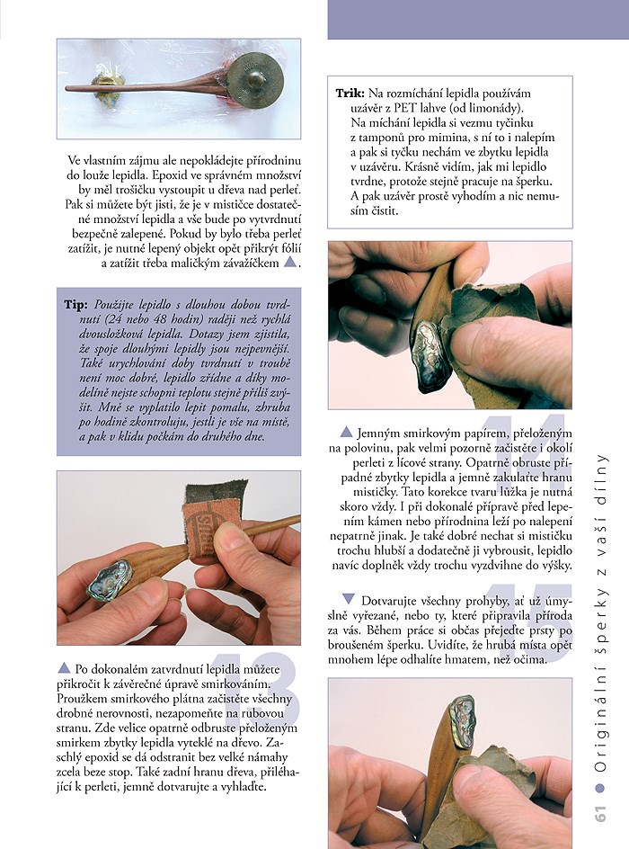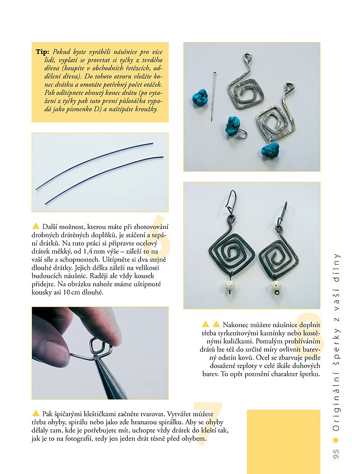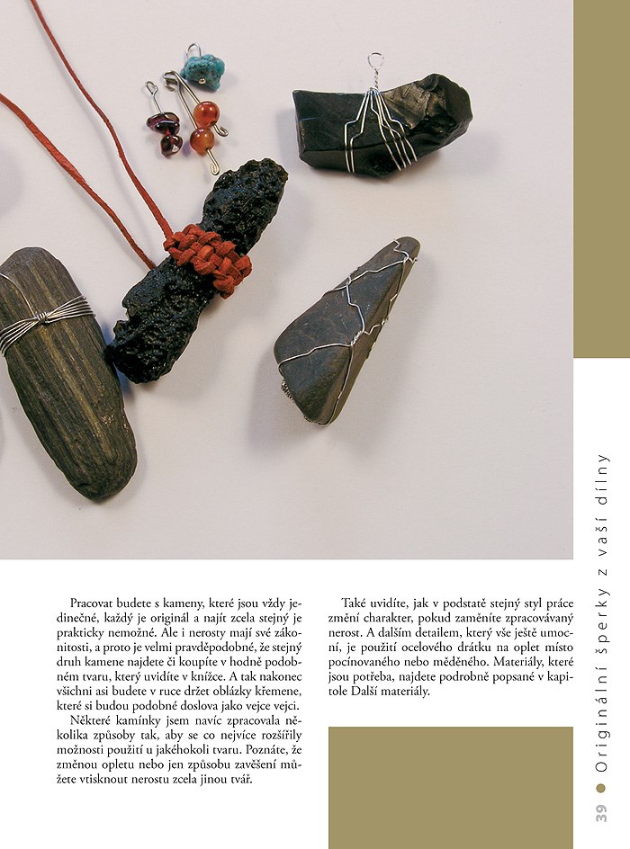Společně se zkušenou lektorkou kurzů si vyrobíte své vlastní šperky: co kus, to originál. Zlato a stříbro ponecháte profesionálům, vy budete využívat především přírodních materiálů – kamenů, mušlí, perleti, dřeva či kůže. Dozvíte se, jaké mají různé materiály výhody nebo nevýhody a také jak se rozhodnout v obchodě při výběru nářadí. Naučíte se odrátovat kamínky a zkombinovat je s měděným plíškem či dřevem. Vyřežete si ozdobné jehlice ze dřeva, upletete si kulatou šňůru z řemínků, vytepete drobnosti z drátků. Vytvoříte si spoustu jednoduchých a působivých šperků pro sebe a své blízké – náhrdelníky, spony do vlasů, náušnice, přívěsky, ale také knoflíky a jiné doplňky.