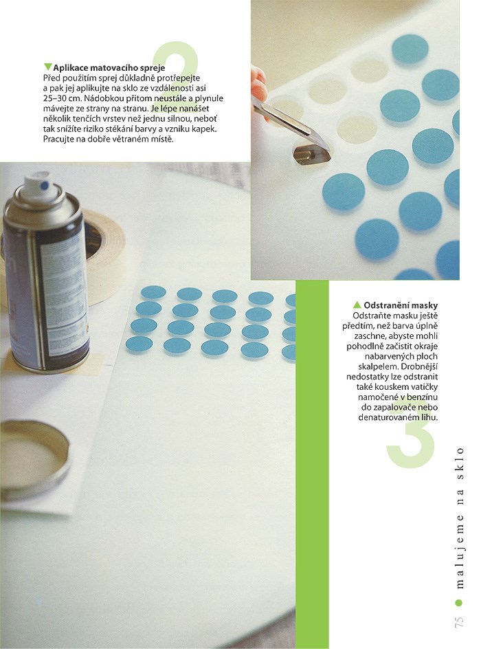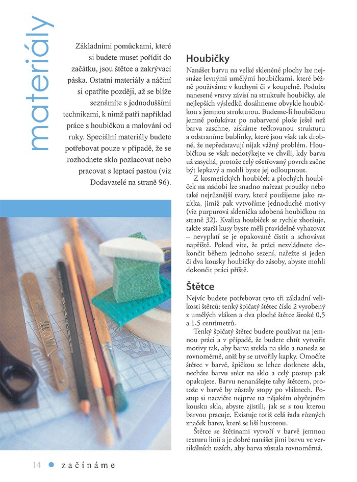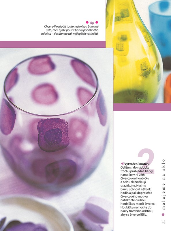 V první části knihy uvádíme praktické informace, které představují důležitý základ pro další experimentování. Dočtete se zde o skle, barvách, materiálech a úskalích, které zdobení skla přináší. Poté vám představíme techniky aplikace barev a zdobení skla, k nimž patří malování štětcem, práce s houbičkou, pokovování, monotisk, osazování a sgraffito. Následuje 15 projektů, které vám krok za krokem předvedou uvedené techniky podrobněji. Záběr projektů, popisujících zdobení skleněných prvků interiéru, je velmi široký. Dozvíte se, jak vytvořit funkční i čistě dekorativní úpravy velkých i drobných objektů, pokovit stojánky na vonné tyčinky, ozdobit skleničky houbičkou namočenou v barvě, vyrobit matování na skle, nebo ozvláštnit skleněnou kruhovou desku stolku. Kniha osloví jak ty, kteří už mají s malováním nějaké zkušenosti, tak i úplné začátečníky, stejně jako všechny ty, kteří se budou řídit přesně instrukcemi, nebo popsané techniky přizpůsobí svým konkrétním výtvarným záměrům. Ať už zvolíte jakýkoli z výše uvedených postupů, tato kniha vám v každém případě nabídne svěží pohled na výtvarné úpravy skleněných prvků interiéru.