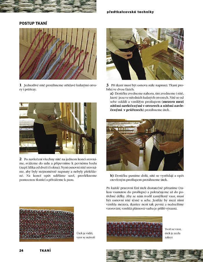 Ruční tkaní patří mezi nejstarší textilní řemesla na světě. Autorky vás provedou jeho historií, seznámí vás s materiály a pomůckami vhodnými pro tkaní v domácích podmínkách. Osvojíte si předtkalcovské techniky, druhy vazeb a různé způsoby tkaní – na hřebenovém stávku, zapjastky, karetky, na rámu. Poznáte také základy tkaní tapiserie a ručního vázání koberců. V praktické části naleznete názorné nákresy a fotografie výrobků jako je taška, vesta či pásek, jejichž vlastoruční výrobu si můžete vyzkoušet. Knihu uzavírá inspirativní galerie výrobků a textilní slovníček základních pojmů.